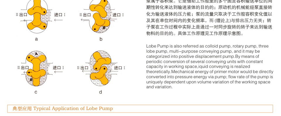 ZB3A系列膠體泵-又稱羅茨泵、不銹鋼轉(zhuǎn)子泵、凸輪泵、萬用輸送泵、酵母泵、蝴蝶泵、三葉泵、鞋底泵、藥料泵、熱溶膠體泵、顆粒膠體泵、渣料泵、蛋白渣泵、高濃漿泵等,依靠兩個同步反轉(zhuǎn)動的轉(zhuǎn)子在旋轉(zhuǎn)過程中于進(jìn)口處產(chǎn)生吸力(真空度),從而吸入所要輸送的物料。