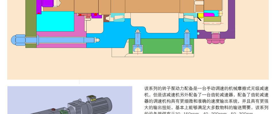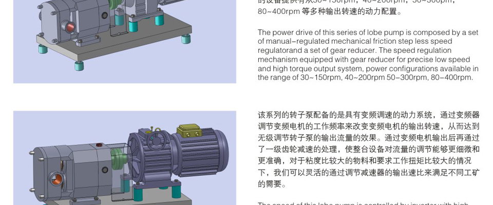 5、轉(zhuǎn)速低,一般在 200 rpm 至 600 rpm 之間,經(jīng)其輸送的物料保持原有品質(zhì)不變,不起任何理化反應(yīng)。